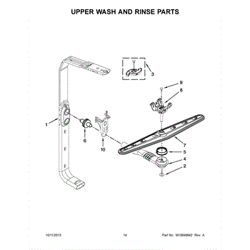 The Feed Tube is an OEM replacment part for Whirlpool built-in dishwashers. Extending from the bottom of the lower spray arm manifold to the upper spray arm, this tube routes rinse water during cycles. Causes relate to mineral accumulation stiffening the interior over time, punctures from sharp utensil edges, or cracks allowing leaks Symptoms of a defective feed tube involve: