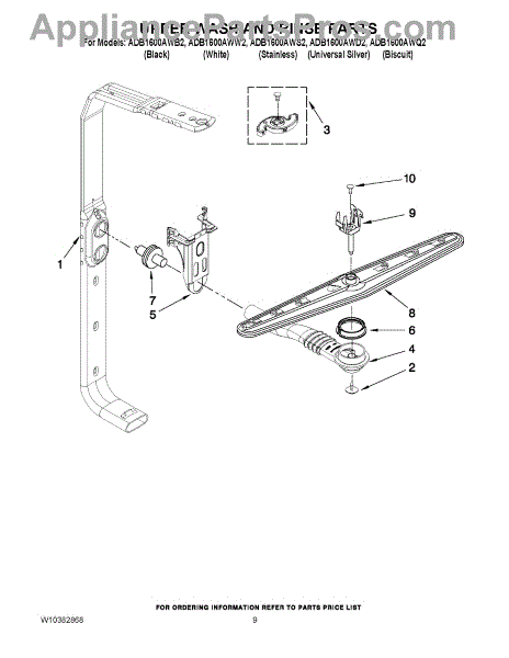 Parts for Amana ADB1600AWW2: 07 - Upper Wash And Rinse Parts