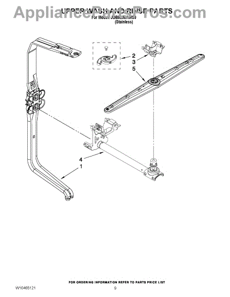 This feed tube assembly channels wash water from the pump to the upper spray system. Replacing a cracked or obstructed tube helps restore upper-rack cleaning performance and can prevent leaks at the back of the tub. What it does: