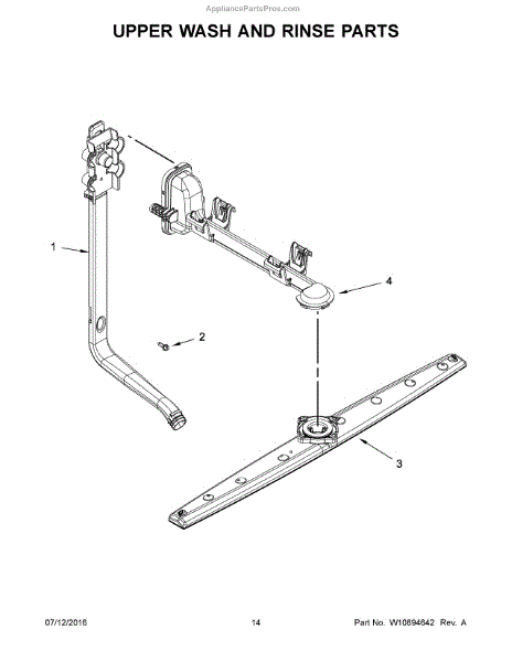 The Arm Spray is an OEM part for Whirlpool dishwashers. This component is crucial in the dishwasher's ability to effectively clean dishes, as it distributes water evenly throughout the unit during a wash cycle. Located beneath the upper rack, the arm spray rotates and sprays water at a controlled pressure and angle, ensuring that all dishes, regardless of their placement, are thoroughly washed.