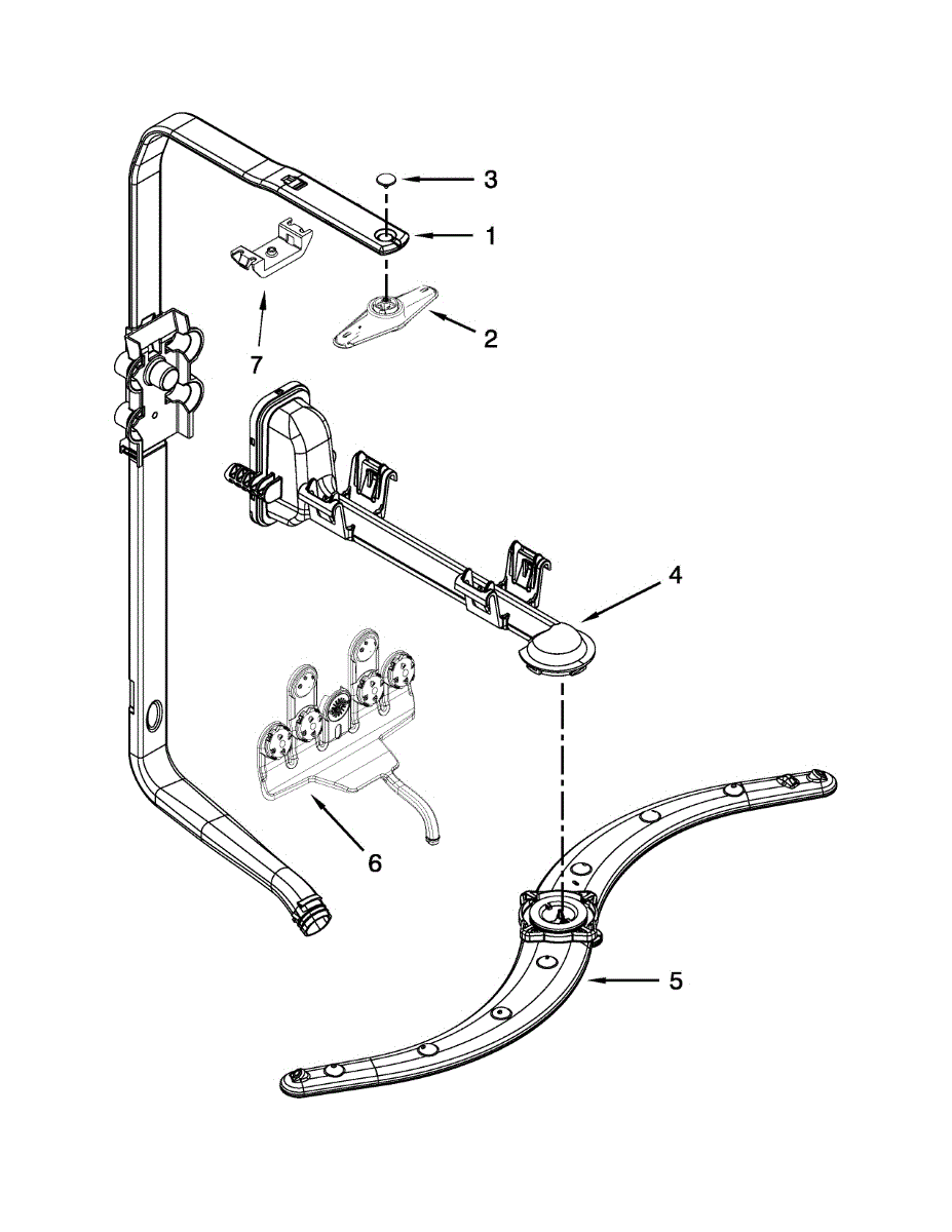 Replaces a cracked, broken, or worn dishwasher spray arm. Rotates during wash cycles to distribute water evenly across dishes. Easy snap-in installation.