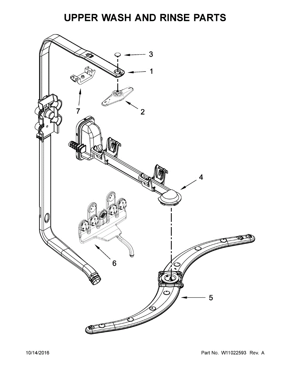 Replaces a cracked, broken, or worn dishwasher spray arm. Rotates during wash cycles to distribute water evenly across dishes. Easy snap-in installation.