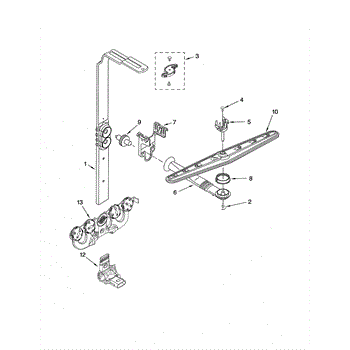This adjustable manifold connects the upper rack to the dishwasher's rear water feed. It channels wash water to the upper spray arm and maintains a sealed connection as the rack height changes for consistent cleaning performance. What it does: