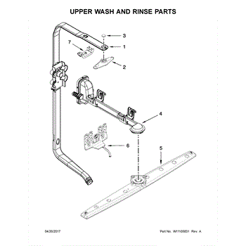 The Upper Spray Arm is an OEM part for Whirlpool dishwashers. It is responsible for distributing water throughout the upper part of the dishwasher during the wash cycle, ensuring dishes are cleaned effectively.