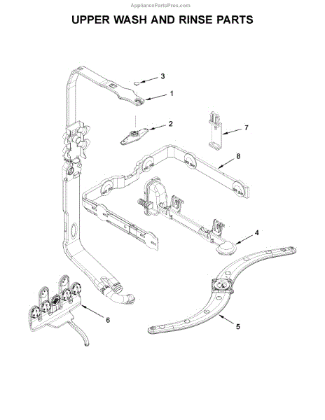The Upper Spray Arm is an OEM part for Whirlpool dishwashers. It is responsible for distributing water throughout the upper part of the dishwasher during the wash cycle, ensuring dishes are cleaned effectively.