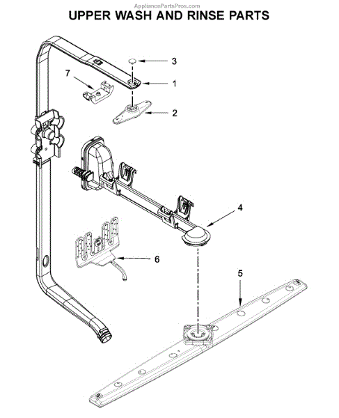 The Upper Spray Arm is an OEM part for Whirlpool dishwashers. It is responsible for distributing water throughout the upper part of the dishwasher during the wash cycle, ensuring dishes are cleaned effectively.