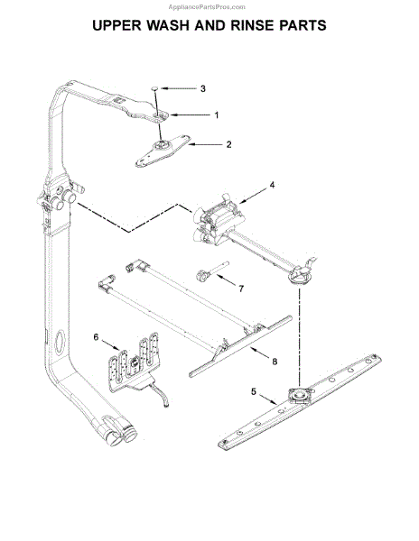 The Upper Spray Arm is an OEM part for Whirlpool dishwashers. It is responsible for distributing water throughout the upper part of the dishwasher during the wash cycle, ensuring dishes are cleaned effectively.
