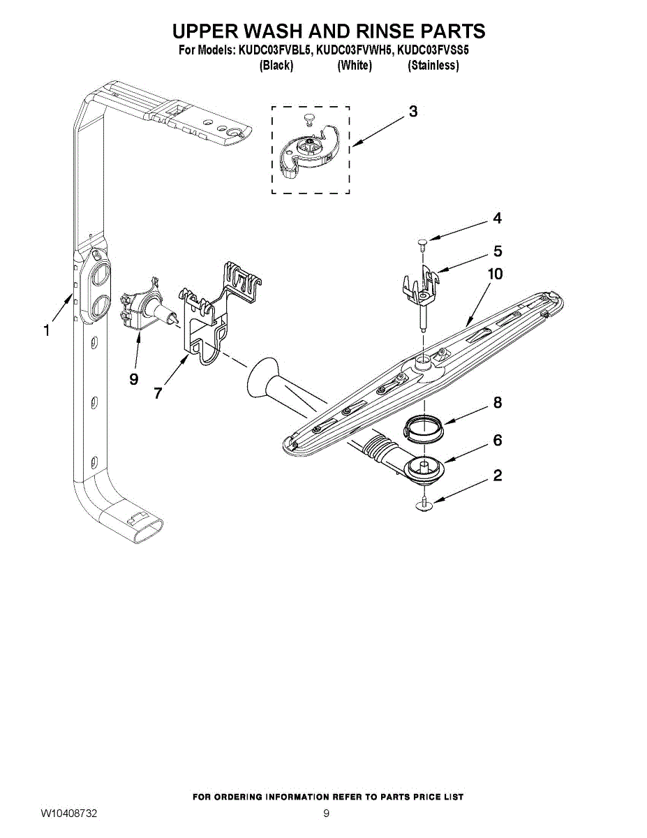 Secures the upper spray arm to the water feed. Replace if cracked, broken, or loose to restore proper arm alignment and rotation for the top rack.