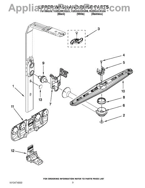 Parts for Kitchenaid KUDS30CXWH6: 07 - Upper Wash And Rinse Parts