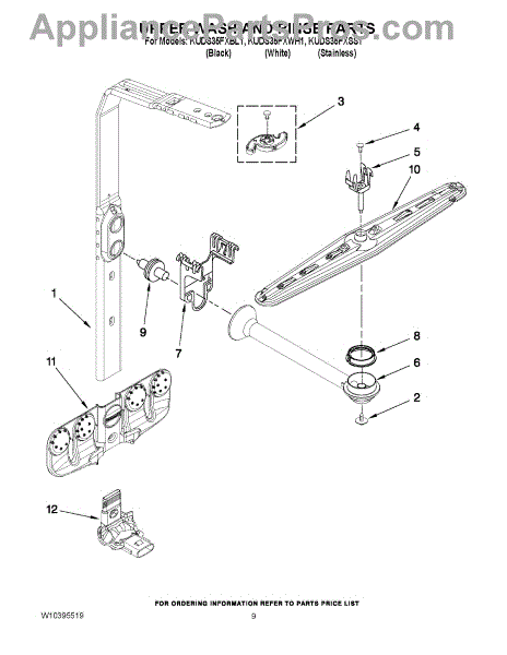 Parts for Kitchenaid KUDS35FXWH1: 07 - Upper Wash And Rinse Parts