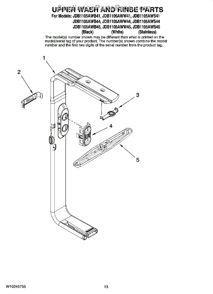 Parts for Maytag JDB1105AWB44: 10 - Upper Wash And Rinse Parts, Optional Parts (Not Included) Parts