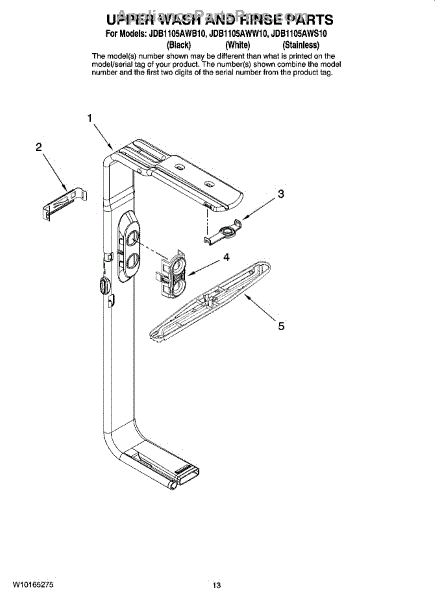 Parts for Maytag JDB1105AWW10: 10 - Upper Wash And Rinse Parts, Optional Parts (Not Included) Parts