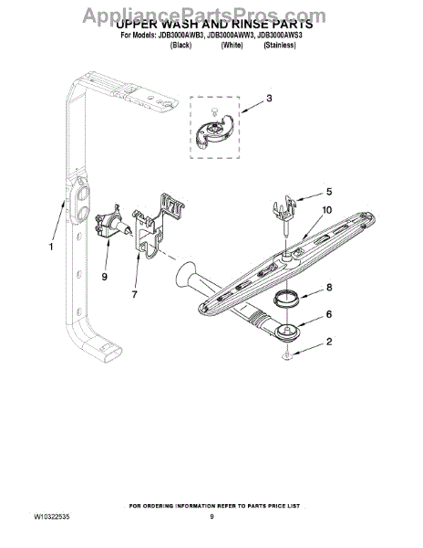 This upper spray arm distributes pressurized water to clean dishes in the dishwasher's upper rack. It restores proper water coverage for improved cleaning performance when the arm is cracked, clogged, or not spinning freely. What it does: