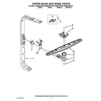 The Feed Tube is an OEM replacment part for Whirlpool built-in dishwashers. Extending from the bottom of the lower spray arm manifold to the upper spray arm, this tube routes rinse water during cycles. Causes relate to mineral accumulation stiffening the interior over time, punctures from sharp utensil edges, or cracks allowing leaks Symptoms of a defective feed tube involve: