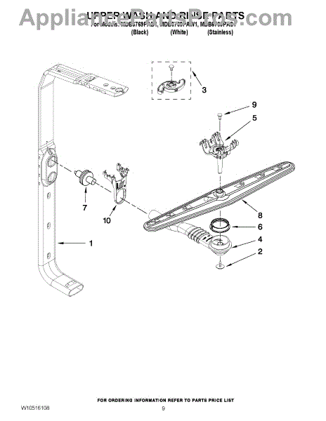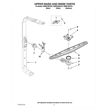 The Feed Tube is an OEM replacment part for Whirlpool built-in dishwashers. Extending from the bottom of the lower spray arm manifold to the upper spray arm, this tube routes rinse water during cycles. Causes relate to mineral accumulation stiffening the interior over time, punctures from sharp utensil edges, or cracks allowing leaks Symptoms of a defective feed tube involve:
