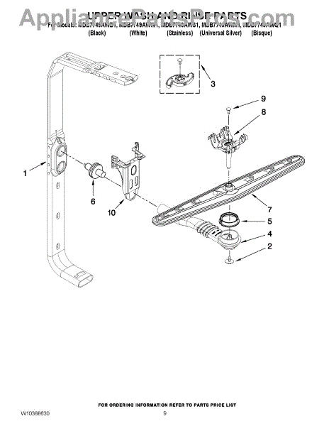 The Feed Tube is an OEM replacment part for Whirlpool built-in dishwashers. Extending from the bottom of the lower spray arm manifold to the upper spray arm, this tube routes rinse water during cycles. Causes relate to mineral accumulation stiffening the interior over time, punctures from sharp utensil edges, or cracks allowing leaks Symptoms of a defective feed tube involve: