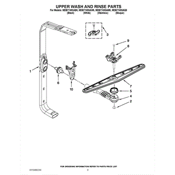 The Feed Tube is an OEM replacment part for Whirlpool built-in dishwashers. Extending from the bottom of the lower spray arm manifold to the upper spray arm, this tube routes rinse water during cycles. Causes relate to mineral accumulation stiffening the interior over time, punctures from sharp utensil edges, or cracks allowing leaks Symptoms of a defective feed tube involve: