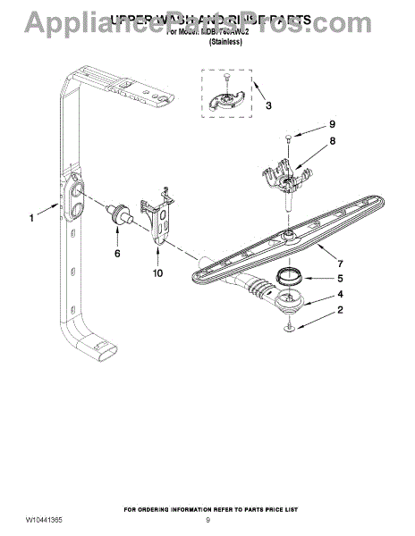 The Feed Tube is an OEM replacment part for Whirlpool built-in dishwashers. Extending from the bottom of the lower spray arm manifold to the upper spray arm, this tube routes rinse water during cycles. Causes relate to mineral accumulation stiffening the interior over time, punctures from sharp utensil edges, or cracks allowing leaks Symptoms of a defective feed tube involve: