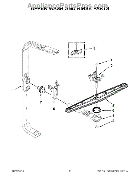 The Middle spray arm is an OEM replacement part for Whirlpool dishwashers. Located inside the dishwasher tub, this middle spray arm helps deliver water to dishes on all levels for optimal cleaning.