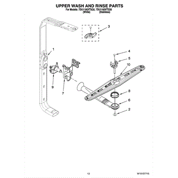 Parts for Whirlpool 7DU1100XTSS0: 10 - Upper Wash And Rinse Parts