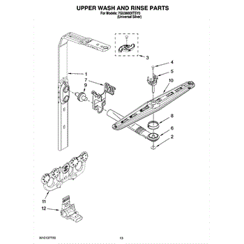 Parts for Whirlpool 7GU3600XTSY0: 10 - Upper Wash And Rinse Parts
