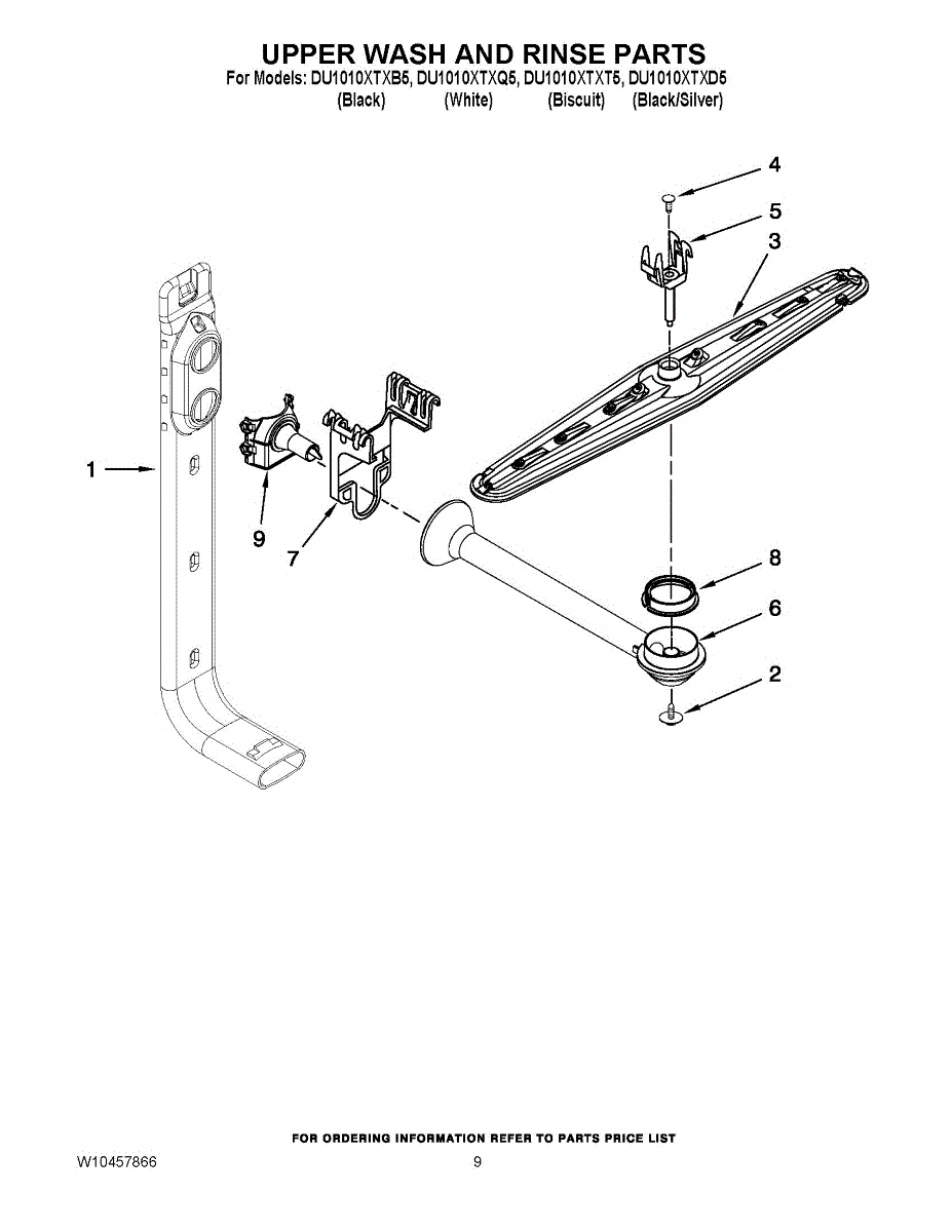 Parts for Whirlpool DU1010XTXT5: 07 - Upper Wash And Rinse Parts