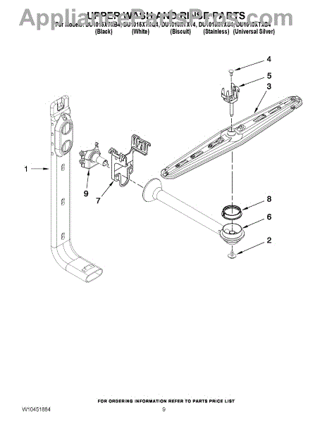 Parts for Whirlpool DU1015XTXS4: 07 - Upper Wash And Rinse Parts