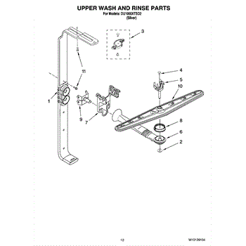 Parts for Whirlpool DU1055XTSD2: 10 - Upper Wash And Rinse Parts