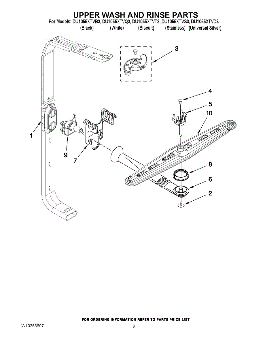 Parts for Whirlpool DU1055XTVB3: 07 - Upper Wash And Rinse Parts