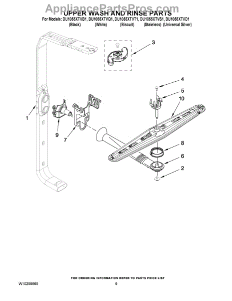 Parts for Whirlpool DU1055XTVQ1: 07 - Upper Wash And Rinse Parts