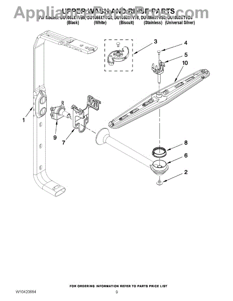 Parts for Whirlpool DU1055XTVQ8: 07 - Upper Wash And Rinse Parts