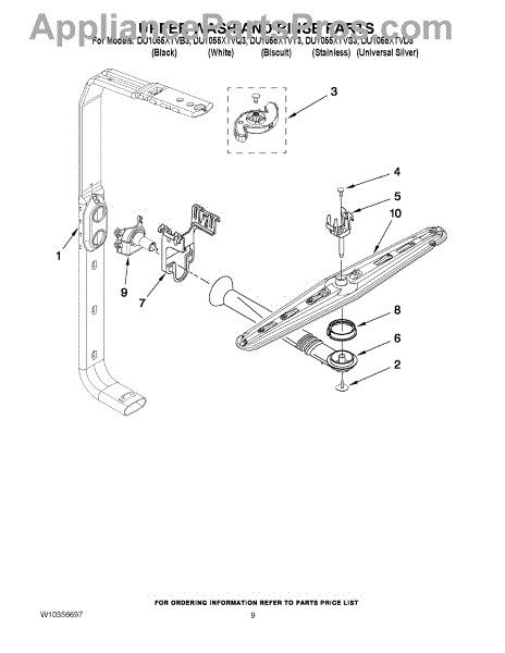 Parts for Whirlpool DU1055XTVS3: 07 - Upper Wash And Rinse Parts