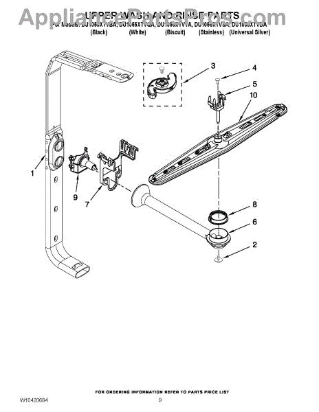 Parts for Whirlpool DU1055XTVTA: 07 - Upper Wash And Rinse Parts