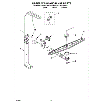 Parts for Whirlpool DU1065XTPB1: 10 - Upper Wash And Rinse Parts