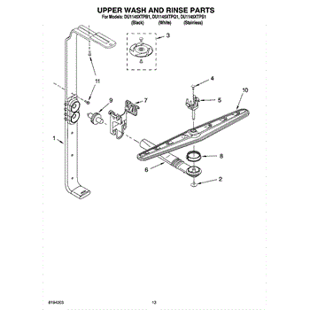 Parts for Whirlpool DU1145XTPQ1: 10 - Upper Wash And Rinse Parts