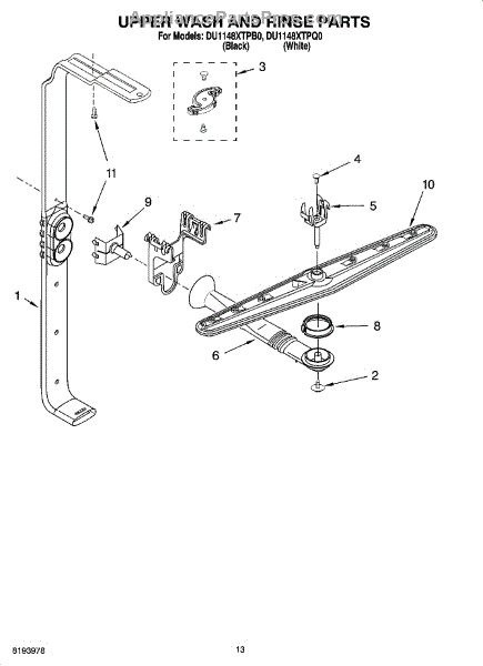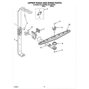 Parts for Whirlpool DU1148XTPQ0: 10 - Upper Wash And Rinse Parts