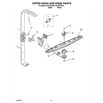 Parts for Whirlpool DU1201XTSB1: 10 - Upper Wash And Rinse Parts