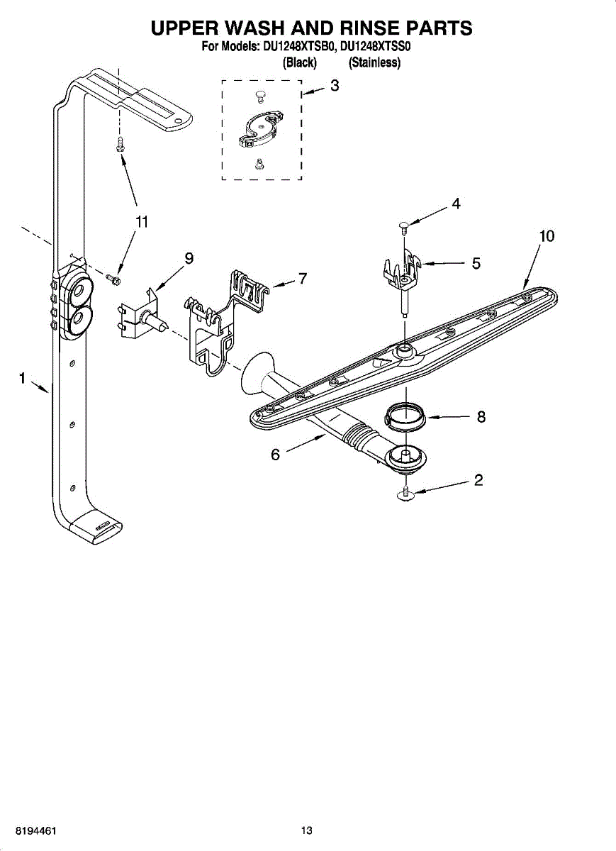 Secures the upper spray arm assembly in the dishwasher tub. Replace if cracked, broken, or worn causing the spray arm to droop or become misaligned.