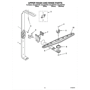 Parts for Whirlpool DUL240XTPQ7: 10 - Upper Wash And Rinse Parts