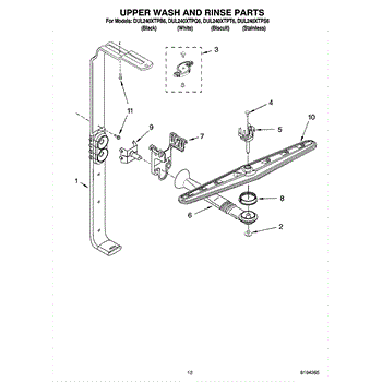 Parts for Whirlpool DUL240XTPS6: 10 - Upper Wash And Rinse Parts