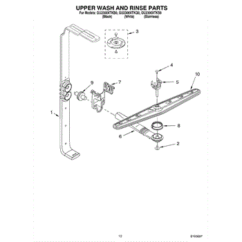 Parts for Whirlpool GU2300XTKB0: 10 - Upper Wash And Rinse Parts