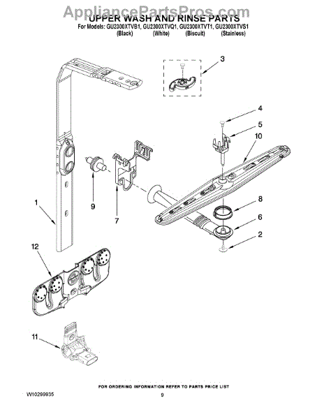 Parts for Whirlpool GU2300XTVS1: 07 - Upper Wash And Rinse Parts