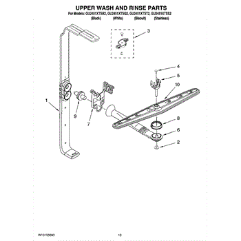 Parts for Whirlpool GU2451XTSQ2: 10 - Upper Wash And Rinse Parts