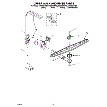 Parts for Whirlpool GU2600XTPQ3: 10 - Upper Wash And Rinse Parts