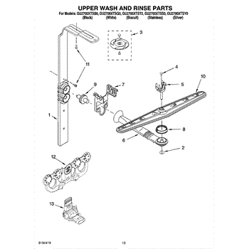 Parts for Whirlpool GU2700XTSB0: 10 - Upper Wash And Rinse Parts