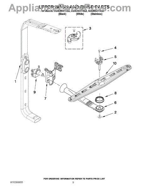 Parts for Whirlpool GU3000XTXB2: 07 - Upper Wash And Rinse Parts