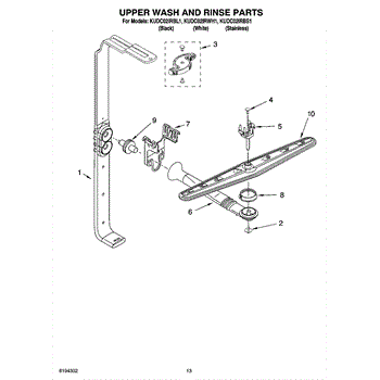 Parts for Kitchenaid KUDC02IRBL1: 10 - Upper Wash And Rinse Parts