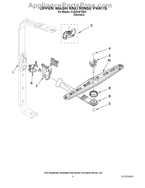 Parts for Kitchenaid KUDC03FVSS3: 07 - Upper Wash And Rinse Parts