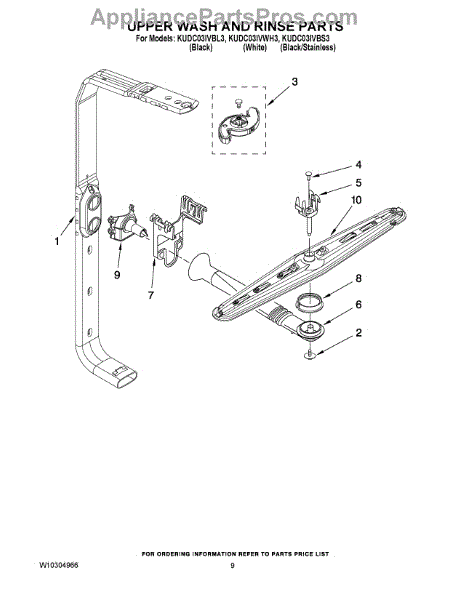 Parts for Kitchenaid KUDC03IVWH3: 07 - Upper Wash And Rinse Parts