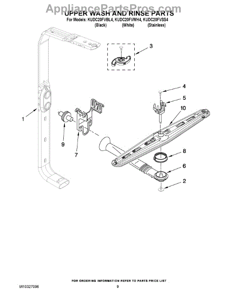 Parts for Kitchenaid KUDC20FVBL4: 07 - Upper Wash And Rinse Parts